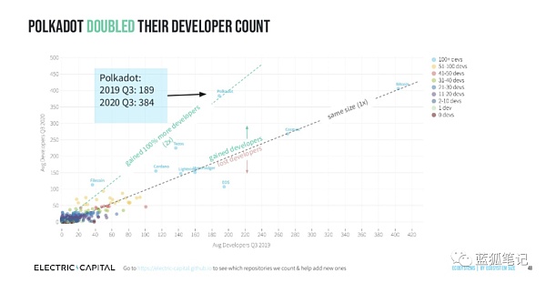 在首次提交后的三年期间,波卡的开发者数超过同期的以太坊,波卡初步显示出了力量。