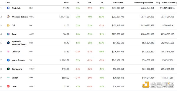 DeFi排名前十锁仓量 数据来源:Debank