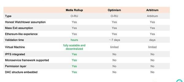 Cryptocito:我手中有一张对比MetisDAO的Rollup和其他Layer-2方案的图表,可以请你讲解一下Rollup方案的意义以及MetisRollup的独特之处吗?