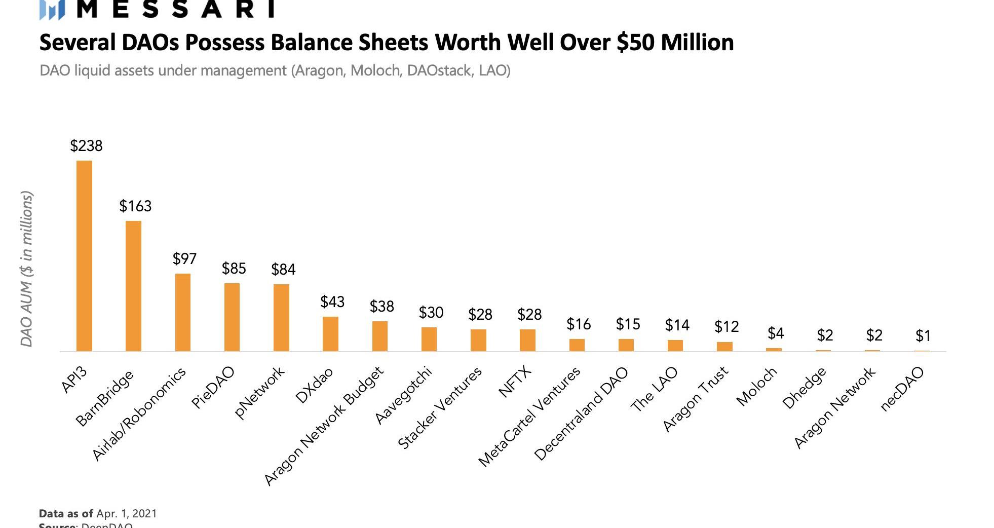 虽然DAO在去年的大部分时间里都是配角,但在加密协议积累价值数千万的资产负债表的情况下,2021年第一季度DAO又重新引起了人们的兴趣。