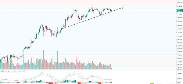 目前仍是上升三角整理状态,昨日下探至趋势线附近开启反弹,后续将迎来变盘,上方短期压力60000美金,下方支撑55000美金,近期耐心等待方向选择,4月14日Coinbase将在纳斯达克上市,后续利好刺激一旦向上突破,新的上涨空间将打开,大方向仍是多头趋势,中长线逢大幅回落,分批低吸,耐心持有。