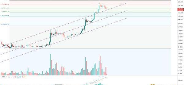 符合预期迎来超跌反弹,目前未破趋势线支撑和0.618回撤线支撑,多头趋势还在,若能止跌企稳,后续仍有望重回前期强势,预计近期仍以反弹为主,反弹第一压力160美金,突破站稳下一压制175美金,强支撑129美金。