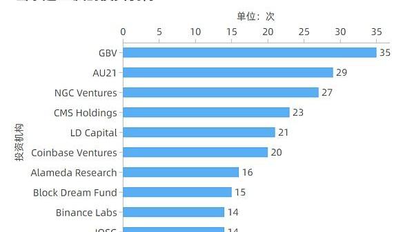 随着融资数量的大增,投资机构的格局也在发生变化。根据链捕手统计,今年第一季度投资数量排名前三的投资机构分别是GBV、AU21Capital、NGCVentures,分别分别出手35、29、27次。其它出手超12次以上的投资机构还有CMSHoldings、LDCapital、CoinbaseVentures、AlamedaResearch、IOSGVentures、BinanceLabs、Blockdreamfund等。
