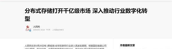 3月25日,人民网发了一篇标题为“分布式存储打开千亿级市场深入推动行业数字化转型”的文章,肯定了分布式存储的发展潜力。