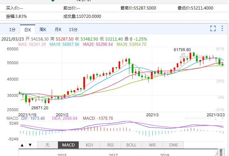 比特币在经过几天的横盘整理后,昨日又大跌,截至当日收盘跌5.62%。这是继3月13日创出61795.80的新高后,第二次大跌,3月15日也是大跌5.62%。