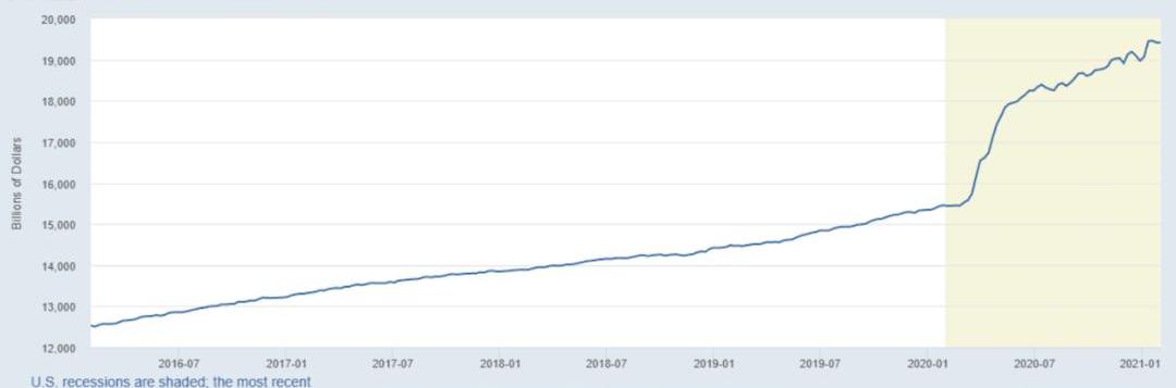 从M2货币存量来看,自2020年初以来,货币供应量已增加了约4万亿美元: