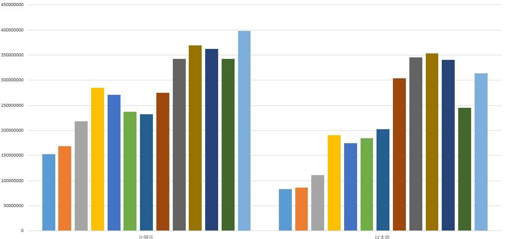 比特币上周的链上交易量1121.22万BTC,环比下降10.34%;而同期以太坊的链上交易量为2037.76万ETH,环比回落10.75%%。