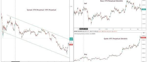为了了解价差交易在实际中的工作方式,让我们看一下Deribit上的ETH-PERP/BTC-PERP的示例。