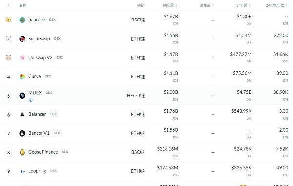 过去24小时去中心化交易所的交易量数据来源:Debank