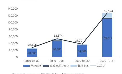 交易收入包括从平台上发生的交易费中的净收入。公司对加密货币的购买和销售收取约0.50%的费用,不过这个费率会根据市场情况而变化。从2019年中到2020年底,交易服务收入从23535万美元上升至109617万美元,涨幅366%。交易服务收入是营业收入中最重要的组成部分,约占比86%。