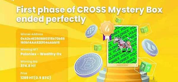 CROSS由CyberVein基金会支持打造,是全球首个去中心化的NFT发行&拍卖平台,在1月13日正式上线火币生态链Heco,并于2月26日10:00启动MysteryBox盲盒游戏,前2期会上线8个与币圈主流公链、项目和媒体合作推出的联名款NFT作品,NFT总价值超500万,盲盒总奖池1BTC。在未开奖前每个盲盒均有25%的中奖率,盲盒只有获拍NFT成功的玩家才能打开。