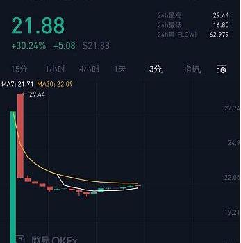 2月23日,欧易OKEx正式上线Flow通证。行情显示,FLOW开盘报价16.8美元,最高涨至29.44美元,相较于私募价和社区轮售价?0.1美元,最高涨幅近300倍。