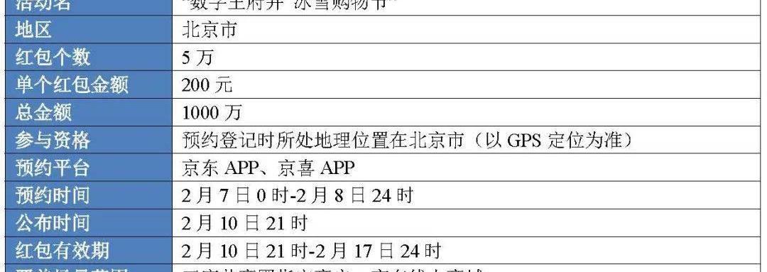 2021年2月6日,在北京冬奥会开幕倒计时一周年之际,为实施科技冬奥行动计划,加强冬奥支付服务环境建设,北京市东城区人民政府围绕冬奥消费全场景,主办了“数字王府井,冰雪购物节”数字人民币试点活动。本次活动共有超过252万市民预约报名,中签率仅为1.98%。
