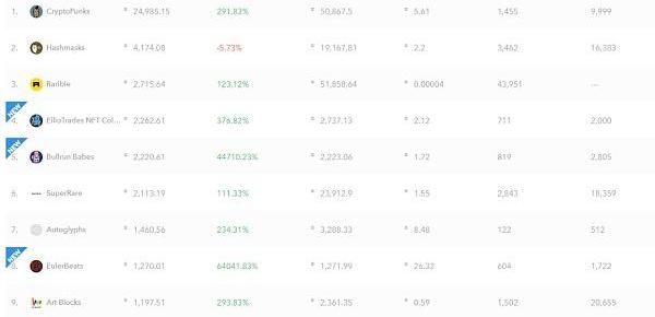 根据opensea数据显示,排名前10的NFT作品,平均成交价格分别为5.61ETH、2.2ETH、0.00004ETH、2.21ETH、1.72ETH、1.55ETH、8.48ETH、26.32ETH、0.59ETH、19.95ETH。