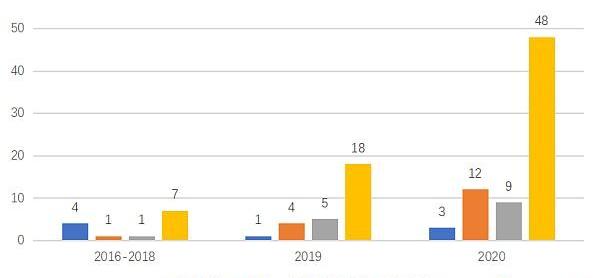 相较于2016-2019年,2020年政府区块链项目招投标呈现招标数量多、覆盖地域广、参与企业多、中标金额大等特点,与区块链行业发展共同呈现蓬勃发展的状态,取得了显著成绩。