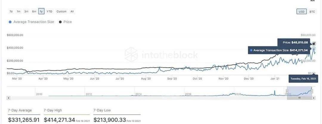 在这里,有必要提供证据证明MicroStrategy确实为比特币的机构投资打开了大门,同样,平均交易规模的指标值得研究。