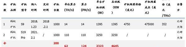 2019年7月,收购4475台比特币矿机,挖矿能力从57PH/s翻倍至大约112PH/s。