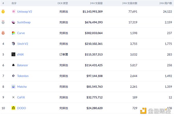 2.过去24小时去中心化交易所的交易量:28.6亿美元