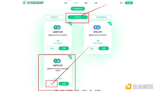 选择[LP挖矿区]点击[选择]按钮抵押LP令牌