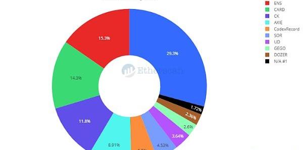 其中71%是由10大代币完成的,包括游戏代币和域名。