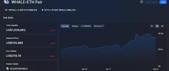 可以看到兑换路径为Whale先换成ETH,ETH再换成USDT,不过不影响,因为ETH和USDT之间的滑点非常小,不影响最终结果,我们来看一下实际流动性池子的大小: