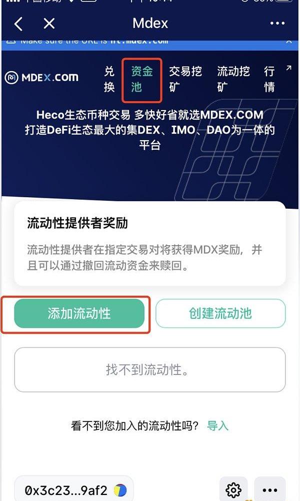 1、导入成功后,可通过火币往提取Heco资产至钱包,点击“发现”按钮,在顶部输入LendHub官网链接官网。