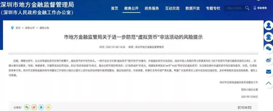 同时,国内的相关监管防范也正在升级。发稿当日,深圳市地方金融监管局又发风险提示,打击“虚拟货币炒作”之风,对其非法活动进行清理整治。