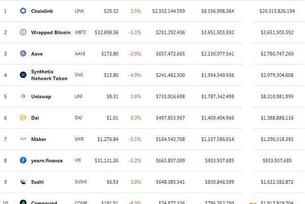 DeFi项目锁定资产前十排名及锁仓量,数据来源:Debank