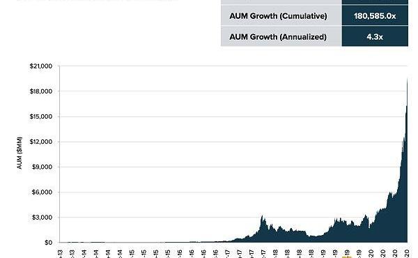 图2:自成立以来的灰度AUM,2013年9月25日至2020年12月31日