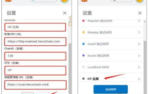 需要在MetaMask中设置火币主网网络参数;