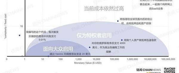 鉴于传统模式中实施成本过高,目前可能仍存在大量成本极高的价值传输的空白地带。