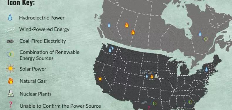 (北美数字货币挖矿资源分布图,图片来自bitcoinmagazine.com)