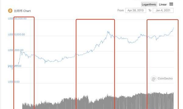 我们先来用这套认知模型复盘下之前比特币的几次价格暴涨的路径:
