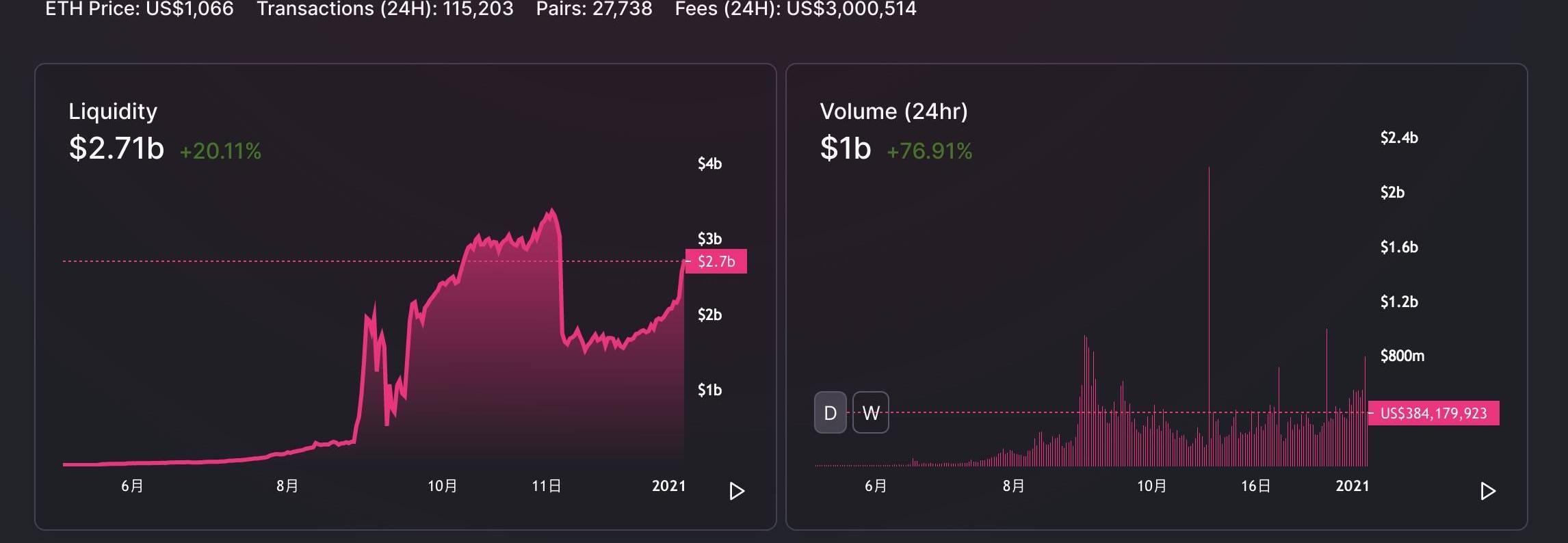 1、Uniswap锁仓量不断飙升,日交易量达到10亿美元