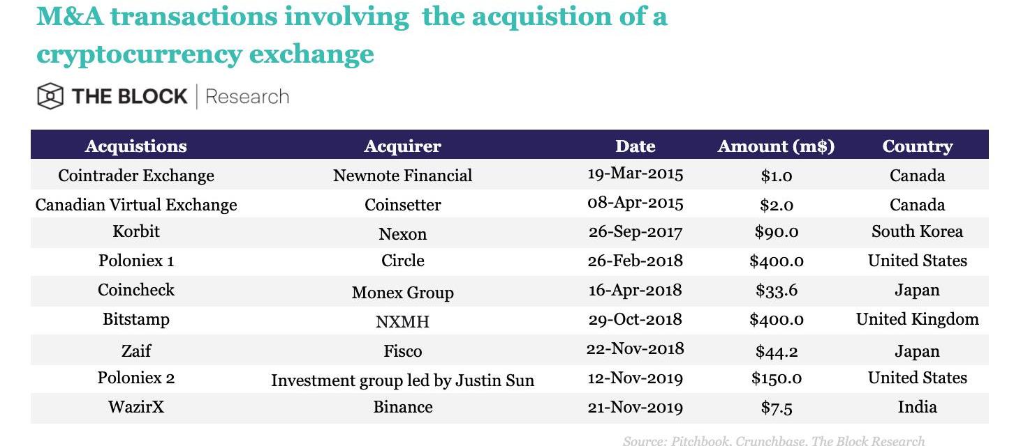 随着企业之间的竞争开始走向整合,加密货币交易所的并购活动在2017年开始流行。