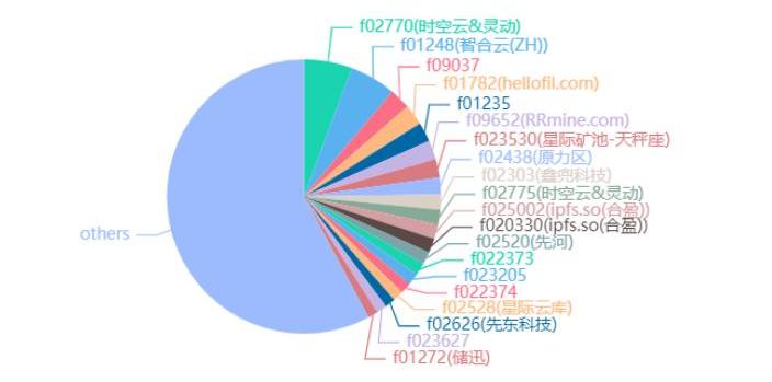 Filecoin为分布式存储IPFS提供了激励机制,核心成员也包括了IPFS成员,两者均由ProtocolLab创建,一经推出便引起了全世界的关注。在2017年就以10%的份额获得了2.57亿美元的融资,创下了当时的最高纪录。上线的进程却远没有融资这么顺利,本计划2018年上线的测试网和主网一拖再拖,最终于2020年10份正式上线。虽然Filecoin项目已经推迟了两年的时间,但相关的社区热度依旧存在,尤其是矿工社区。目前进展在Filecoin共识中,出块采用预期共识的模式,指的是每一轮选举一名或者多名矿工来创建新的区块,矿工赢得选举的可能性跟矿工当前的存储能力成正比。矿工的存储能力则是利用时空证明及复制证明(PoRep)来证明。时空证明可以利用证明链及时间戳证明矿工在一定时长内存储数据,即使验证者不在线,也能够在未来去验证矿工在该段时间内生成了证明链,有效防止临时生成数据攻击。复制证明可以证明数据已经在一个特定的扇区创建成功。并且防范三种攻击:一是女巫攻击;二是外部数据源攻击;三是生成攻击。复制证明避免让矿工可以透过不同方法让自身存储数据小于承诺存储数据,以获得额外报酬。矿工的奖励将线性释放,每6年产量减半。目前Filecoin的存储容量已经突破1EiB,现在达到了1.27EiB,活跃矿工的数量为789。虽然在Filecoin浏览器显示矿工分布在在亚洲、欧洲、北美洲、大洋洲和非洲,但从标签和披露信息上不难看出占有多数容量的参与者为中国矿工。矿工的有效算力分布上,还没有出现像比特币矿池类似的中心化局面。