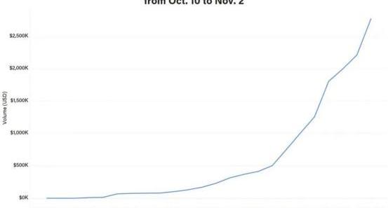 10月10日到11月2日期间Ploymarket的交易量走势图