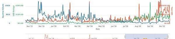 10月23日消息,据加密货币数据提供商Messari最新发布的报告显示,近期以太坊网络处理的交易量已超过比特币网络两倍多,预计今年以太坊网络总体交易处理量有望突破1万亿美元.
