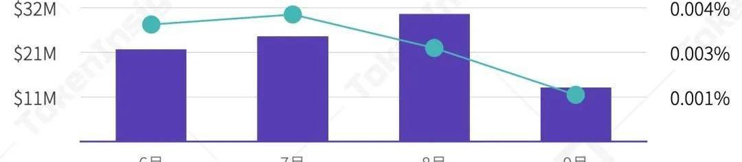 9.?有待考量?去中心化交易所衍生品交易热度在八九月份逐渐降低,其交易量受到整体衍生品市场的影响。dYdX合约产品成交量占其总成交量较上线时下降6%,去中心化交易所合约产品短期内的实际市场需求有待考量。