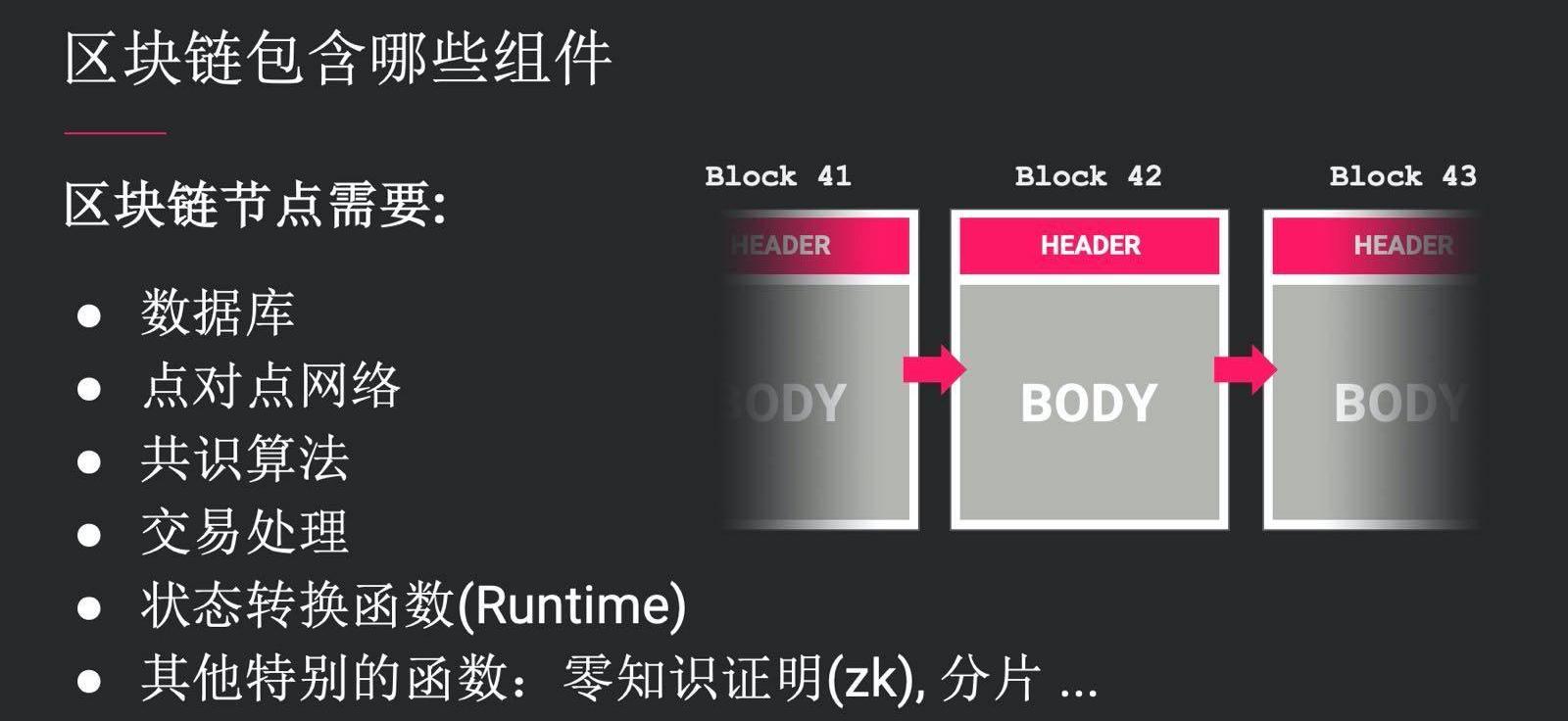 而我们Parity其实从Gavin在很早期15年建立Parity的时候,我们在最初就在帮以太坊开发它的Rust客户端,之前是叫做ParityEthereum现在改名叫做OpenEthereum,我们积累了很多各种各样的对区块链的开发经验,特别是在从18年开始积极的开发Polkadot跨链项目,我们吸收以及总结了很多开发供应链的这样的一些经验,然后从这些经验里边,我们抽取以及进一步的深化,做出了这样的一个区块链开发框架。而这套框架我们命名为Substrate。