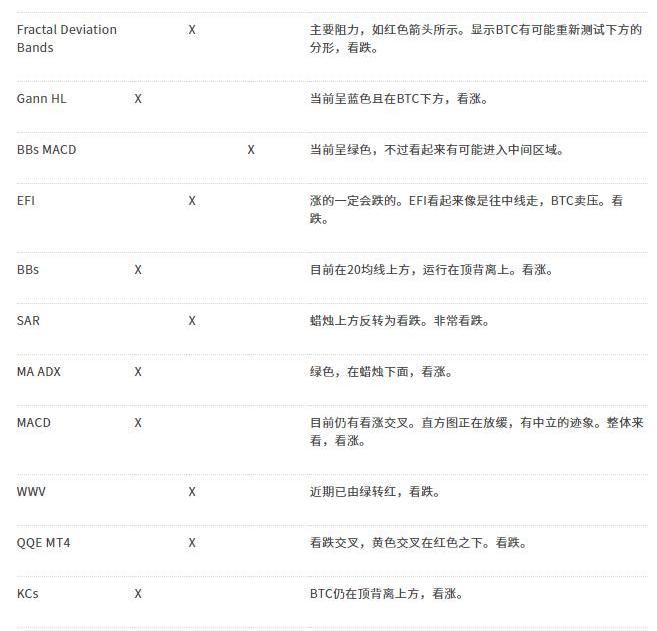 BTC指标总体来看目前呈中性。5个看涨指标和5个看跌指标,加上一个中性指标,五五开。