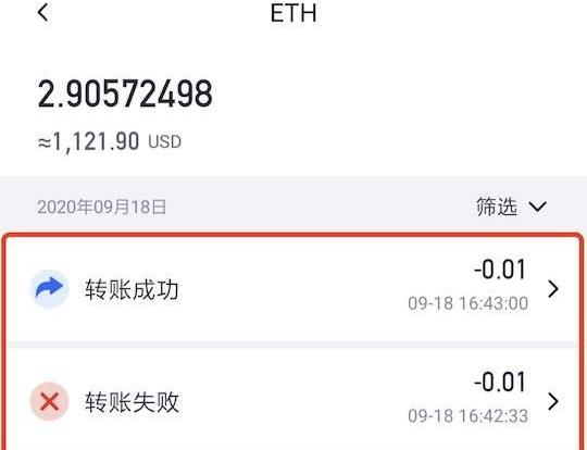 4.交易加速完成后,交易列表内会出现两条交易记录:原交易转账失败,新交易转账成功