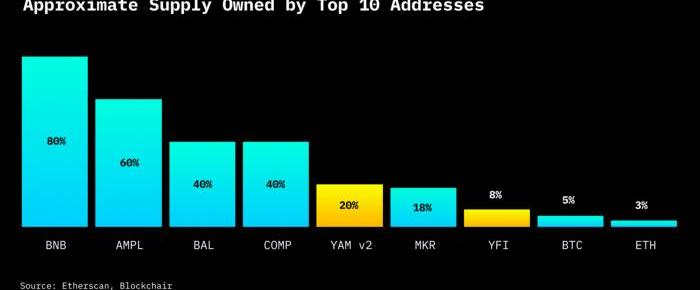 Yearn?的YFItoken发行就是一个极端的例子,9天内发放总供应量的100%。从市场结构的角度来看,由于没有先期持有者,卖出压力不大,这就形成了一个良性循环,较早进场的持有者从金融市场的上涨中获益最多。目前,该token由13507个地址持有,拥有业内最热情、参与度最高的社区之一。