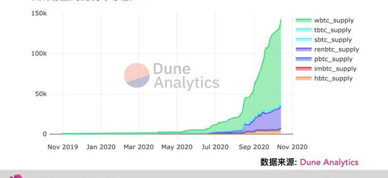Skew的数据表明,wBTC的市值已经超过10亿美元。这展现出了去中心化金融市场在2020年的强劲增长,以及?wBTC相对于其他代币化加密资产的主导地位。