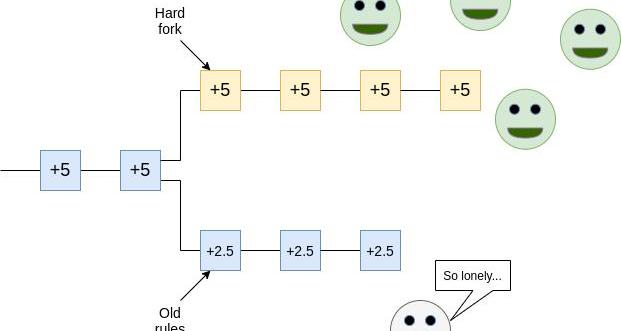 从你的角度来说,你的确还拥有在你所认同的规则基础上构建出来的系统中的货币,但那又如何?其他人都不再接受你的货币了。交易所不会接受,网站上可能会显示新货币的价格节节高涨,但这新币指的是拥有多数用户的链上的货币,你的货币会变得一文不值。密码学货币与区块链从根本上来说乃是社会建构。如果没有其他人相信,它们将变得毫无意义。