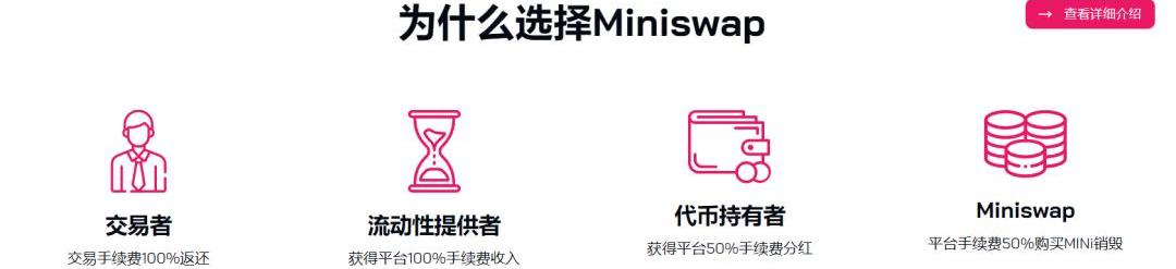 mini和sushi的差异在于:1)mini代币上限10亿枚;2)MINISWAP手续费的0.15%分给MINI代币持有者,而sushi只有0.05%分给sushi持币者。