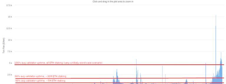 我喜欢人们如此尴尬地向以太坊施压,因为以太坊没有预先设定‘2100万’的硬上限,而过去两个月网络的的交易费用已经高到足以完全抵消PoS奖励。