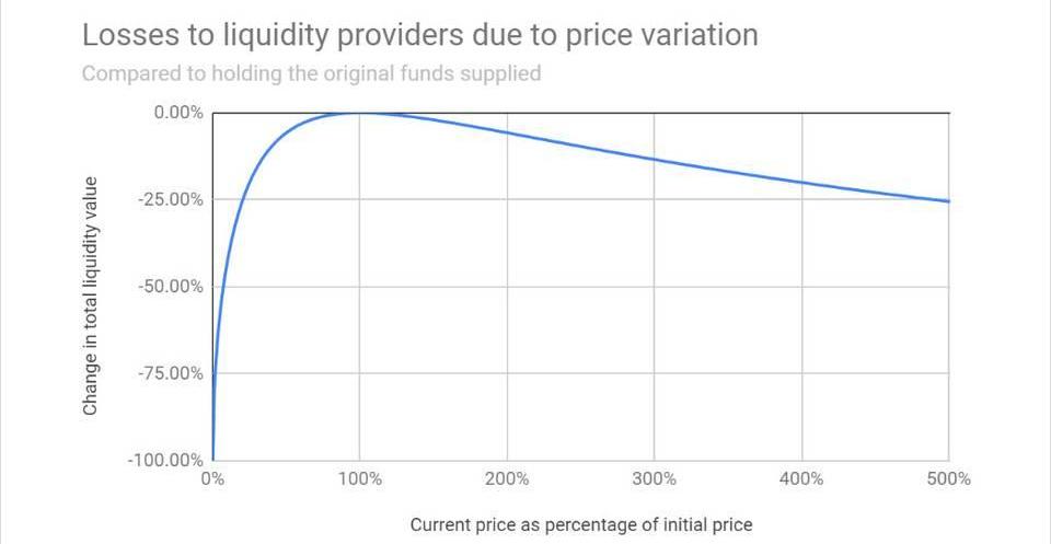 实际上,当流动性提供者去提取他们的代币时,他们往往会遇到一个令人不快的意外:代币数量小于他们最初质押的数量。这种损失后来被称为无常损失。