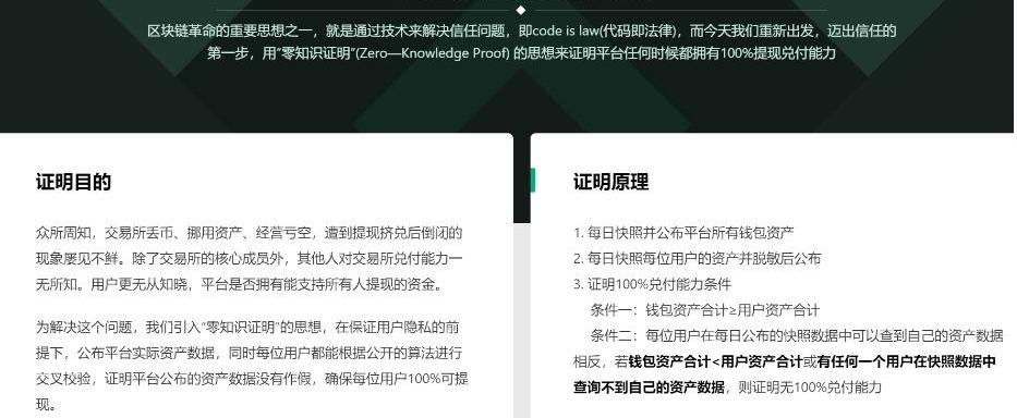 具体来看,FCoin利用零知识证明的思想公布以Hash值为索引的用户资产数据库,用户可以根据自己的UID、随机数、资产数量使用开源算法计算Hash值,并在公开数据库查询自己的资产数量是否正确,「任何一位用户查询不到自己的资产,均说明公示数据造假。」FCoin在官网写道。