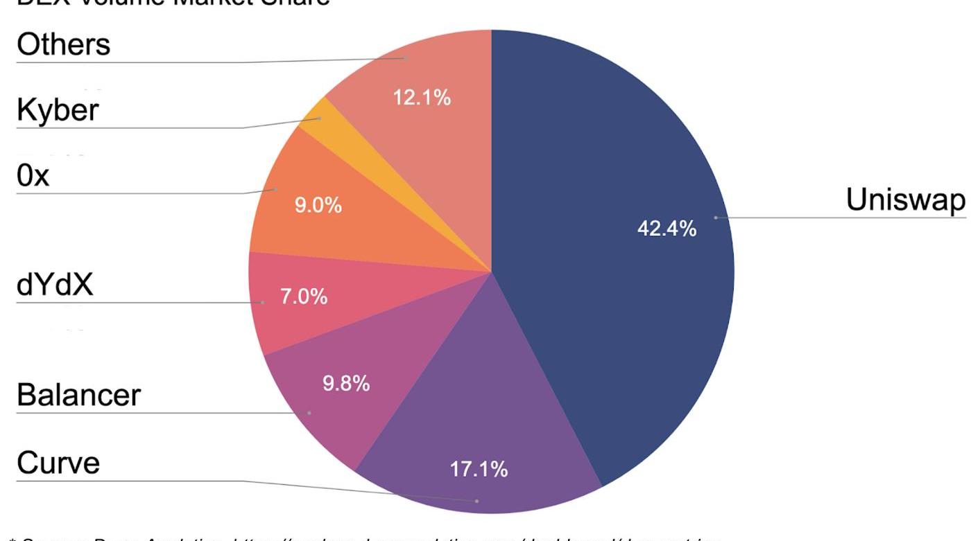 DEX还遵循类似且经过验证的增长策略,该策略在2017年初受到了很多大型交易所的欢迎:未在其他交易所上市的代币/资产可以在DEX上线,获得这些资产的投资敞口。在这种情况下,DEX为所有DeFi代币和项目提供流动性。代币的创建可能会超过中心化交易所添加它们的速度,从而使DEX成为新的新资产和较小资产的自然交易场所。